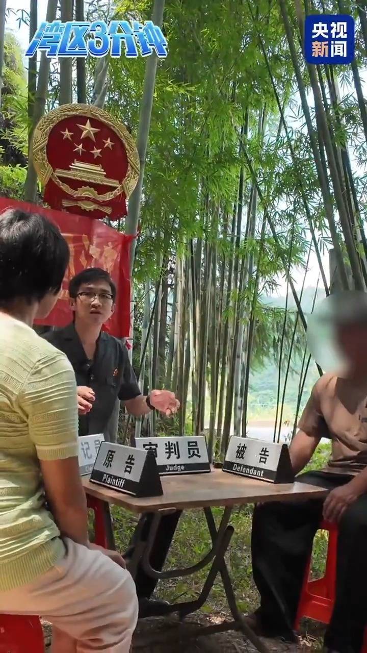 r开庭有时候在山涧边,有时候在竹林里。庭长李长志却说,想找到这里也很简单:肩上的国徽在哪,法庭就在哪里。